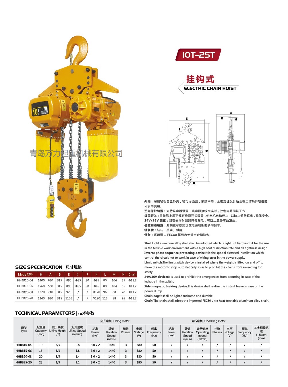 极限开关:吊上吊下都有开关装置,使自动停止,防止链条超出,确保安全。